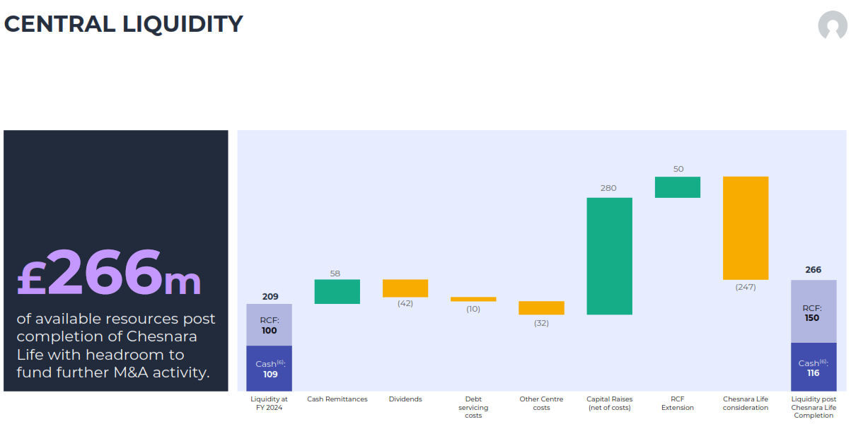 This is the arithmetic that keeps me honest, and it comes directly from Chesnara's own investor presentation, page 12, the Central Liquidity waterfall.
